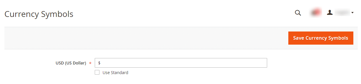 Step 2: The currency added to your store will appear here. If you want your custom currency symbol, uncheck the Use Standard checkbox and enter the currency symbol. Keep the Use Standard checked to use the standard symbol of the currency.