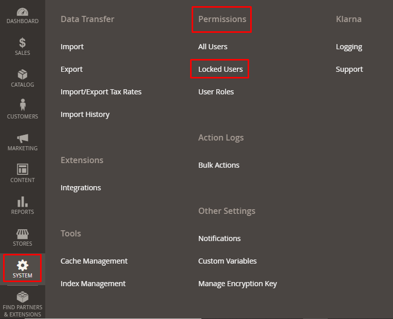Step 1: From the Admin Panel, move to System -> Permissions -> Locked Users