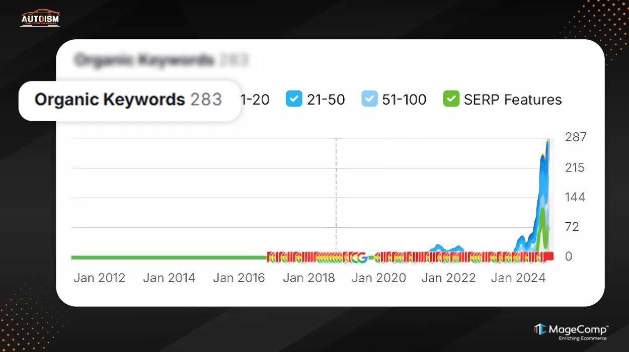 Due to insufficient optimization tactics and a lack of depth in content, Autoism found it challenging to rank for a limited number of keywords. The brand also missed many chances to improve visibility for the services it offered, which negatively impacted how often Autoism showed up in searches related to that brand and severely undermined its opportunity to gain a presence and engage with potential clients.