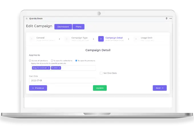 The Shopify Bulk & Tier Pricing App has a simple setup configuration for the admin to create and manage discount campaigns from the admin dashboard.