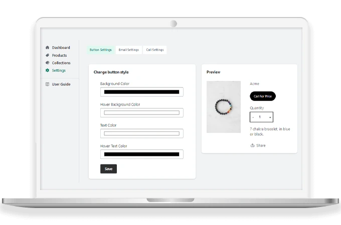 Based on the store’s theme, merchants can configure the appearance of the CTA button from the backend. Change the color of text & background as per the requirement for Call for Price button.