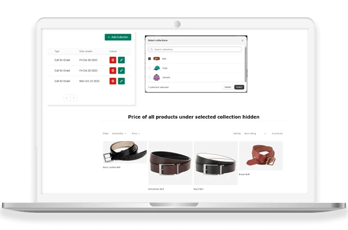 RFQ Request Quote & Hide Price addon also has the option to conceal prices for the complete collection. Prices of all the products under the collection won’t be displayed when selected for the call for price option.