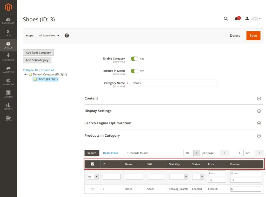 When managing products in Magento 2, having the ability to customize the admin grids can significantly enhance your workflow. One such grid is the category products grid, which appears under Catalog > Categories in the admin panel. This grid displays the list of products assigned to a specific category.