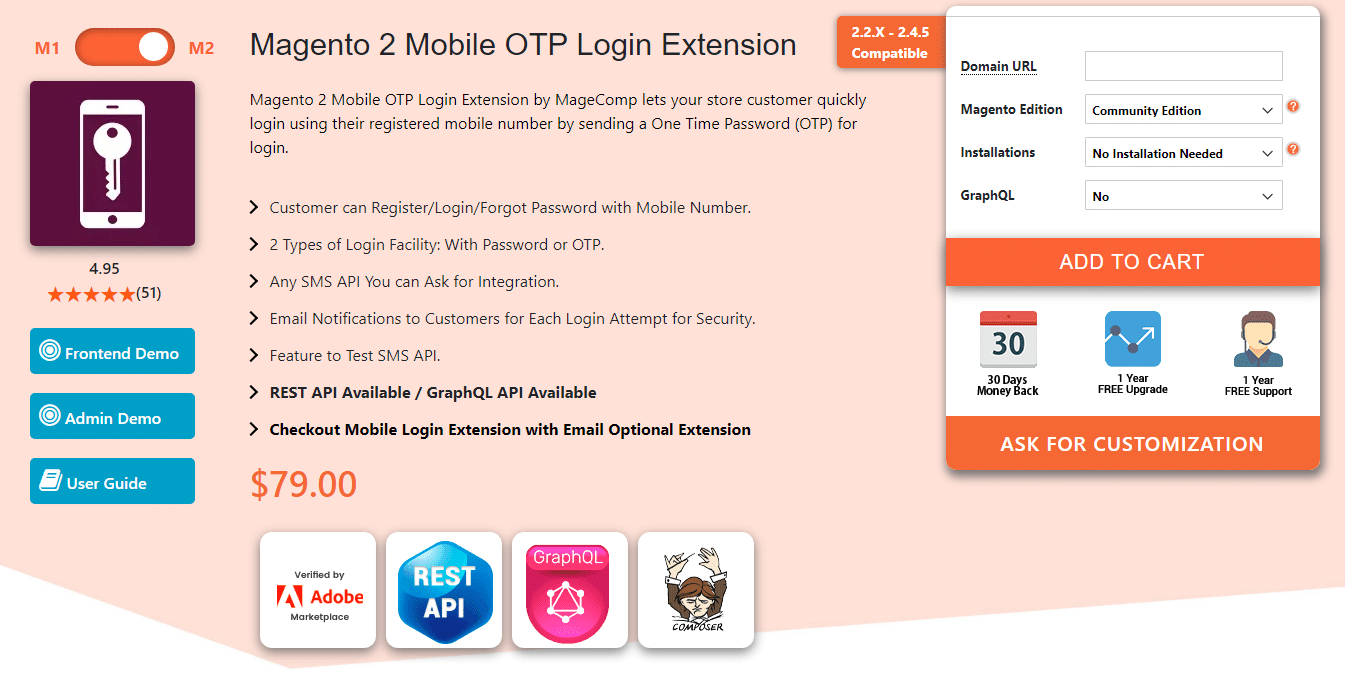 MageComp’s Mobile OTP Login Extension for Magento 2 also wins a hat trick for making it to the top for three years straight. Provide a smooth and quick login process for your customers using OTP and eliminate the need to remember email IDs. Additionally, the extension offers secure login by sending OTP.