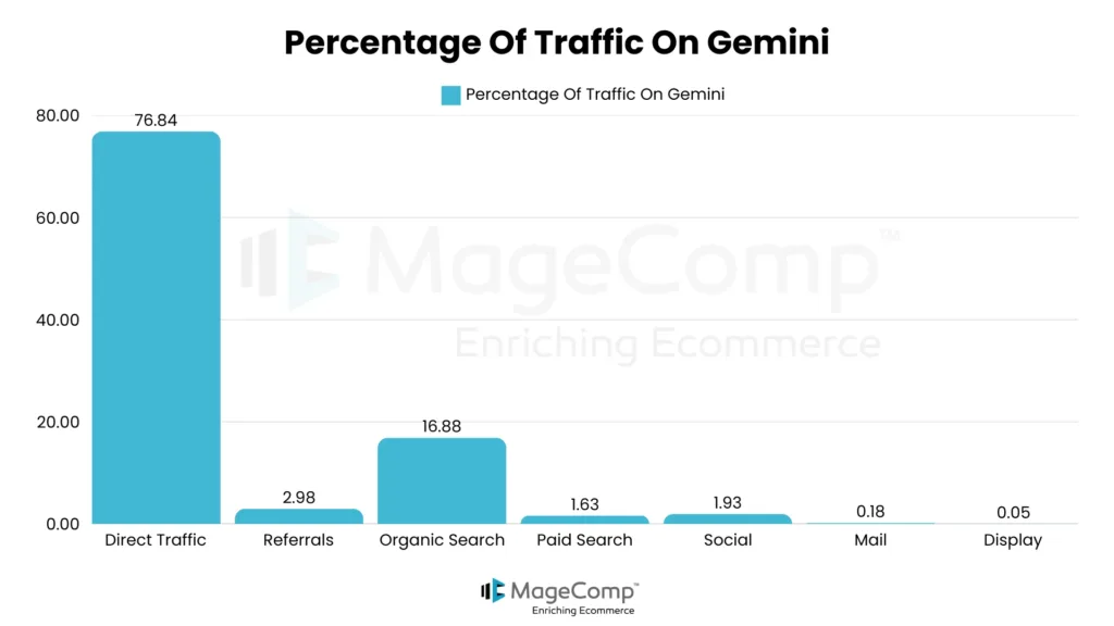 - As of December 2024, 73.38% of traffic to gemini.google.com was direct, while 22.08% came from organic search.