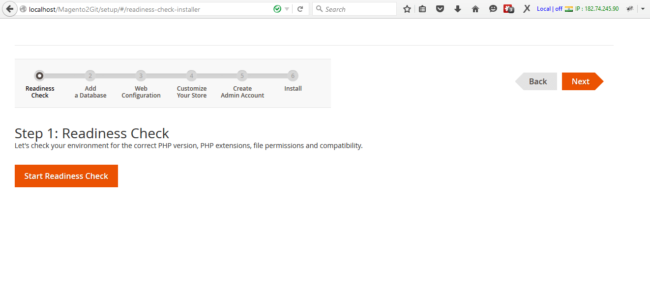 - It will start Readiness Check, like php version, php settings check, Php extensions check, File permission check.