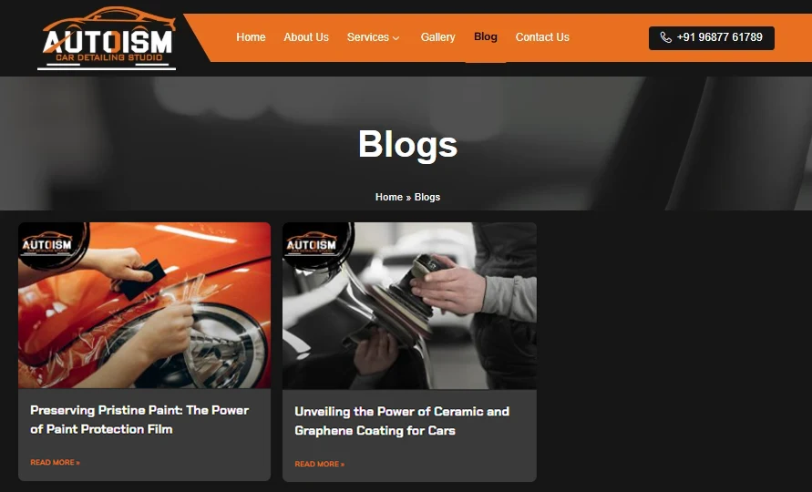 An extensive content calendar was created to explore frequently searched questions and educational avenues in the Autoism industry. Our blog, which was published consistently, followed all best practices in SEO. We incorporated targeted keywords, internal linking, and engaging media in our blogs, which contributed to organic growth in traffic to the blog section and established Autoism’s credibility as a respected source in automotive detailing.