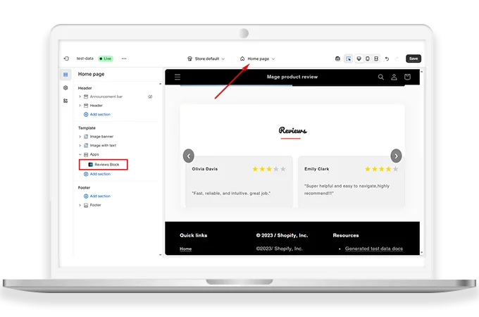 Go beyond individual product pages by placing a dedicated review section anywhere on your site, like your homepage or landing pages, offering visitors a snapshot of overall store satisfaction.